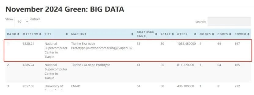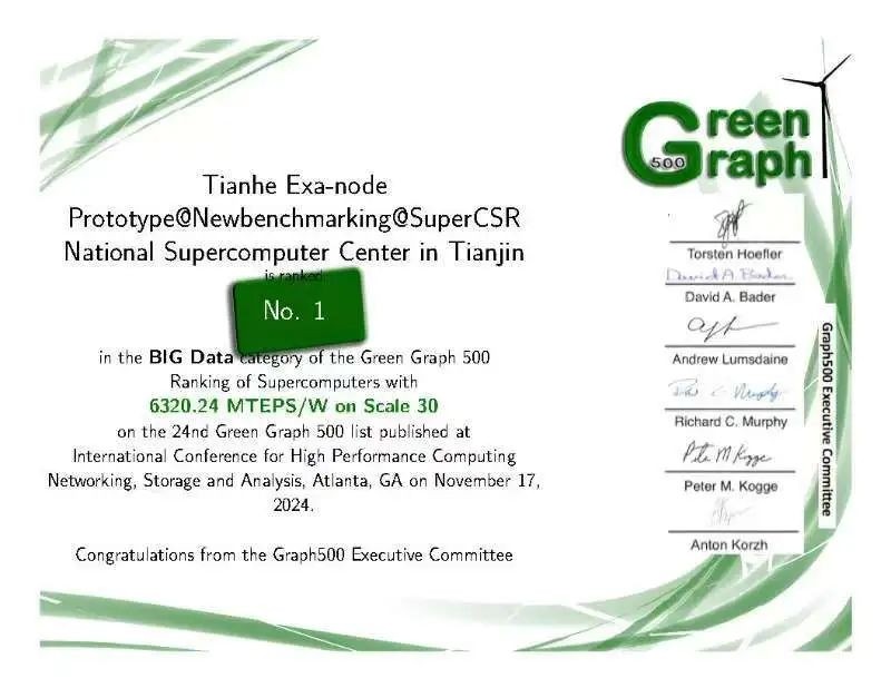 “天河”新一代超級計算機系統在11月17日最新公佈的國際Graph500排名中,以6320.24 MTEPS/W 的性能奪得Big Data Green Graph500 (大數據圖計算能效)榜單世界第一。(圖源:微信公眾號“國家超級計算天津中心”) Graph500排行榜於2010年首次發佈,是國際上評價超級計算機圖計算性能的最權威榜單,主要針對當前熱門的數據密集型應用,如人工智能、大數據處理等實施評測,可充分體現超級計算機的訪存和通信性能,直接反映超級計算機的數據處理能力。 圖計算是一種以圖結構為核心的數據處理與分析方法,是研究複雜網絡、關聯模式和結構化數據的重要工具。隨著大規模數據分析需求的增長,圖計算正成為大數據和人工智能的重要支柱,是各國政府、科研機構和科技企業又一研究熱點。 近年來,依託“天河”新一代超級計算機系統,天津超算中心在數值仿真技術、材料計算、環境氣象等科學研究領域取得了一流學術成果,同時也在超智融合、生成式大模型、超算互聯網等產業領域實現重大技術突破。 此次摘得世界冠軍的成果,不僅標誌著“天河”超算處理複雜數據分析任務的能力取得了國際性領先突破,還為推動新一代智能化技術發展提供了重要支撐。 坐落在天津濱海新區的國家超級計算天津中心,是中國首個千萬億次超算“天河一號”部署所在地,同時部署有“天河”新一代超級計算機系統。(完) 【編輯:張麗欣】