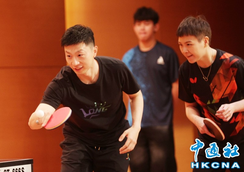 馬龍與台灣學生切磋球技。圖為馬龍(左)與文化大學校友陳思羽(右)搭配混雙。 香港中通社圖片 馬龍隨後接受媒體採訪表示,此次是第一次和蔣澎龍交手,能感受到蔣澎龍、莊智淵等前輩的努力,為台灣乒乓球界帶來深遠的影響。他並表示,非常開心能跟馬英九先生一起開球,之前去過很多地方,但第一次來台灣,過去也一直想造訪,感謝此機會。 針對台陸委會副主委梁文傑日前指陸生團經過“精挑細選” ,蕭旭岑當天表示,能夠出訪交流的學生難道不都是最頂尖的?優秀的學生來台交流有什麼不好?他呼籲陸委會不要畫地自限,這只會凸顯好像台灣很沒有自信、害怕被比較。蕭旭岑指出,此次“兩岸乒乓”交流的效用就是能讓世界知道兩岸可以和平交流,不用激起不必要的對立。(完) 【編輯:李冉】