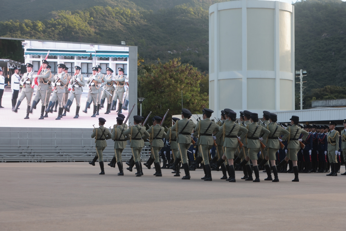 12月4日上午,香港特區政府保安局帶領轄下紀律部隊在香港海關學院舉行國家憲法日升旗儀式,律政司司長林定國為升旗儀式主禮。(香港中通社記者 謝光磊 攝)