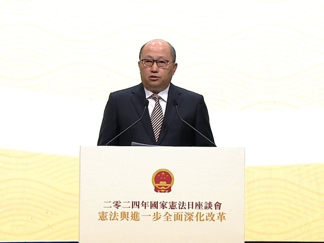 中央政府駐港聯絡辦主任鄭雁雄致辭时強調,堅守用法治精神維護高水平安全,用創新精神推動高質量發展。 今年的座談會以“憲法與進一步全面深化改革”為主題,探討憲法在治國理政、推動進一步全面深化改革的進程中所擔當的重要作用,以及香港所扮演的重要角色。(完) 【編輯:紀東】