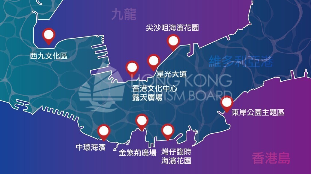 2024跨年倒數煙花闊度長達1300米,港島由中環至北角、九龍半島由西九龍至尖東海傍都能清晰欣賞,共有八個建議最佳觀賞位置。市民旅客身處維港兩岸多個地方,都可欣賞璀璨奪目煙花匯演。五艘躉船及十六艘浮船,將組成前後排列的陣型,多層次及角度發放煙花。結合三座港島地標建築的樓頂煙火,營造高低有序、充滿動感的豐富構圖,為觀眾帶來視覺與聽覺交融的感官盛宴。