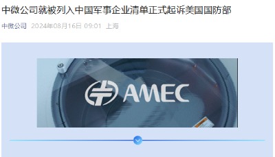 在被美國國防部列入“CMC清單”後,中微公司8月決定起訴美國國防部,并透露公司歷經數月從美國國防部獲悉,之所以將其列入清單,是因為該公司在2019年獲得了由中國工信部參與頒發的“製造業單項冠軍產品獎”。