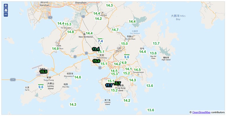 圖為2024年12月23日早上8時30分,香港地區氣溫監測數據。香港天文台截圖 香港天文台預計,東北季候風會在今明(23日-24日)兩日繼續為廣東帶來早晚清涼的天氣。隨著季候風在本週中期稍為緩和,沿岸地區日間氣溫回升。此外,現時位於南海南部的熱帶氣旋會在未來一兩日橫過該區並移向越南南部一帶,與其相關的雲帶會覆蓋南海中至北部及廣東沿岸。預料另一股東北季候風會在本週後期抵達華南,該區再度轉涼。