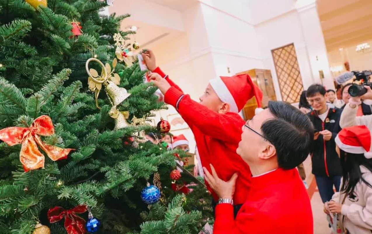 李家超太太與小朋友一齊裝飾聖誕樹。(李家超IG圖片)