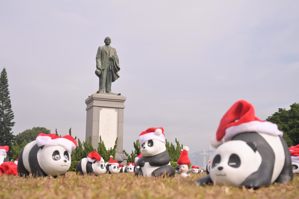 香港新聞網12月25日電  全港最大型熊貓主題展覽《PANDA GO!香港遊》開啟以來吸引大批市民前來“打卡”。今明兩日(25日至26日)展覽將迎來第四站尾站——中山紀念公園,今日(25日)早上大批市民及遊客便早早到場,與換上聖誕新裝的熊貓雕塑合影留念,反應空前熱烈。