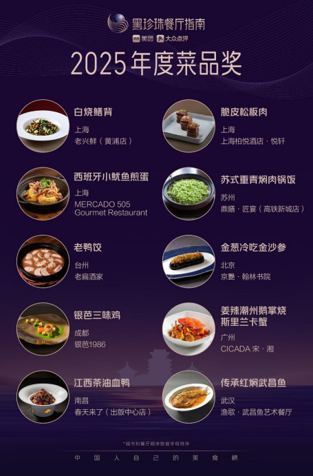 “全國十大名菜”出爐 南昌、蘇州、台州首得獎 而堪稱網友心中的“全國十大名菜”——“2025黑珍珠餐廳指南年度菜品獎”同時出爐,這是全國首個大數據評選的精緻餐飲菜品獎項,目的是為了倡導行業探索食材的無限可能和菜品的藝術性,而不是崇尚貴價食材。 為了促進地域食材的深入挖掘和創新應用,本次黑珍珠發佈會還特別設立了“江西精品食材展”,井岡煙筍、廣昌白蓮等江西特色的國家地理標誌農產品紛紛亮相,現場烹飪展示引得出席者紛紛駐足。(完) 【編輯:譚暢】