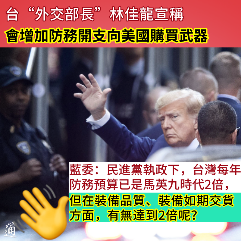 (香港新聞網製圖) 民進黨自上台執政以來,大幅增加其軍事預算。過去5年台灣整體防務預算,已從3815億元(新台幣,下同)增加到5803億元,GDP佔比從2%升至2.5%,呈現逐年增長態勢。2025年度軍費開支更是創下新高,達6470億元,GDP佔比超過了2.6%。 林佳龍近日接受外媒專訪時表示,台灣的防務預算已提升至GDP的2.5%,超過日本及北約多數成員國,也準備響應美國總統當選人特朗普的呼籲,增加台灣的防務預算。他稱,更大筆的防務預算會反映在台灣的軍事採購上,包括向美國購買武器。 特朗普日前接受美媒采訪時質疑美國應否保衛台灣,強調如果台灣要美國提供保護,就應該付“保護費”。台“行政院長”卓榮泰當時連忙回應“願意付出更多責任”,而特朗普想要的,或許正是台灣更多的對美軍購預算。 台防務部門負責人顧立雄8日被問及此事時表示,台防務部門依照作戰需求擬定裝備來源,不管是台灣自行生產或透過軍售等管道。又說台灣當局領導人賴清德已宣示,因此防務預算應會穩健成長。 事實上,特朗普並非只點名過台灣,他上次當總統時,要韓國的軍費或國防預算增加9倍。但韓國沒有屈服,一直撐到到總統拜登上台。前“立委”沈富雄曾在一檔政論節目中指出,可惜的是,目前民進黨團隊沒有一個人足夠當台灣的代表,去跟特朗普談判,因為看到美國人可能兩腳就軟趴趴的。 如今,增加台灣防務預算的宣示也疑似是向美國新政府遞投名狀! 中國國民黨 “立委”羅智強批評,民進黨執政下,台灣每年防衛預算已經來到6000億元,是馬英九時代的兩倍。但民進黨在防衛的投資,對台灣安全到底增進了多少?在裝備品質、裝備如期交貨,以及裝備能量方面,有沒有達到馬英九時代的兩倍呢? 美國國防部監察長早前公布報告,指出台灣2023年12月收到美國依“總統撥款權”提供的軍備“不堪使用”,出現彈藥過期、防彈衣潮濕發霉等情況;據台媒去年9月報道,台灣付了錢但武器遲遲未到,美國積欠台灣的軍火價值已高達6554億(約205億美元)。 台媒曾發表評論文章指,美國一再要求台灣加碼付“保護費”,並不能保證所謂“安全”。若民進黨仍迷信“親美反中”,最後只會淪為棄子。對台灣來說,緩解兩岸局勢,增加合作交流才是和平發展的解方。 中國國防部發言人吳謙早前指出,“天價”與“廢舊”是美國對台軍售的兩個“馳名商標”。從發霉防彈衣到過期彈藥,再到價格虛高的導彈雷達,可以看出美國人的眼裡只有“美國利益”。“台獨”是絕路,外人靠不住。妄圖“倚美謀獨”,終將自取滅亡。(完) 【編輯:劉春】