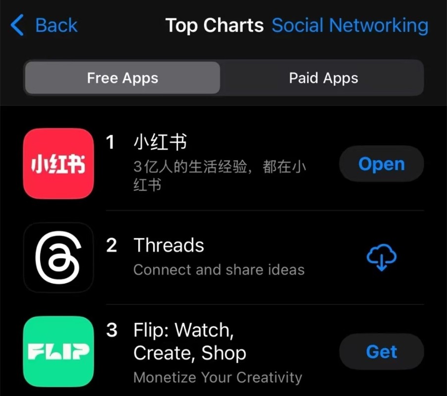 TikTok隨後起訴美國司法部,認為“不賣就禁”法令違背了美國憲法對言論自由的保護,一路上訴到美國最高法院。據報道,TikTok在美國最高法院的口頭答辯在美國時間1月10日已經結束。儘管最高法院當時並未做出判決,但目前看來,禁令被維持的可能性很大。 也就是說,TikTok將於1月19日被禁。 這一段時間,大量美國TikTok用戶在其賬號發佈視頻表示抗議,有網友表示根本不在意自己的數據是否因使用TikTok而洩漏,甚至有網友表示“若TikTok被封,將開設中國銀行賬戶資助中國”。 大批網友也開始集體轉移陣地,紛紛到中國社交平台“小紅書”註冊賬號,一夜之間“小紅書”登上AppStore美國區域免費應用下載量排行榜第一位。小紅書上出現大量英文用戶,原本是中文用戶為主的小紅書湧入大量英文帖子,用戶地址顯示主要是在“美國”。
