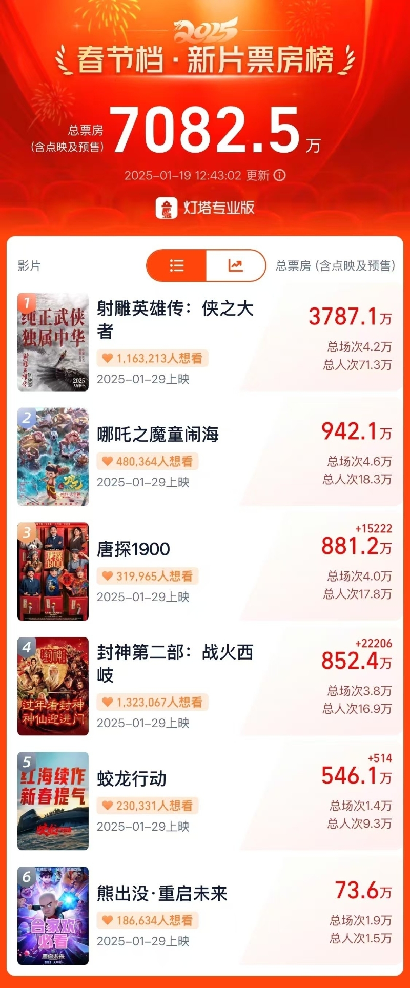 2025中國春節檔預售總票房突破7060萬 已超去年春節檔首日分享到: