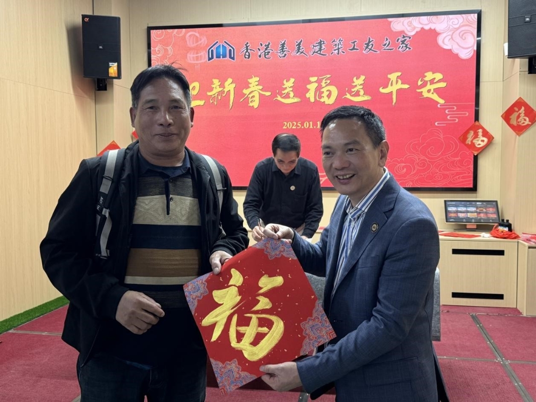 香港新聞網1月20日電 香港善美建築工友之家於1月19日在善美培訓中心大禮堂舉行“迎新春送福送平安”揮春活動,將新年的祝福與福氣送到前線工友的手中。此次活動特別邀請了善美之家顧問陳煒先生為工友會員們揮春送“福”,集“福”迎祥。