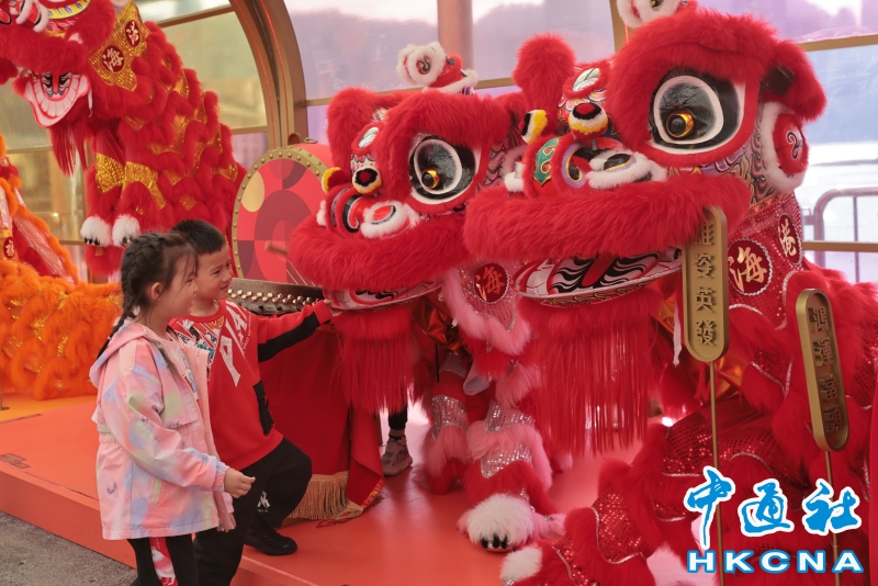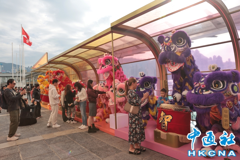 •   為迎新年,香港海港城以寓意“發”的中國幸運數字8及喜慶色彩為創作概念,在海運大廈露天廣場設置28米長的“百彩醒獅長廊”,展出十八頭喜慶色彩的醒獅及十三個傳統中國鼓。(香港中通社記者  謝光磊 攝) 香港中通社圖片