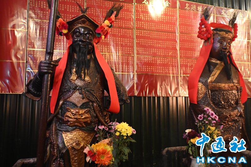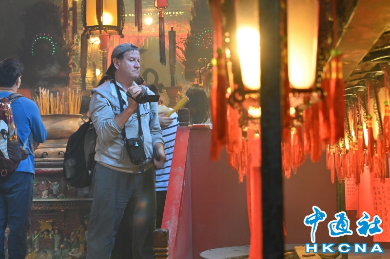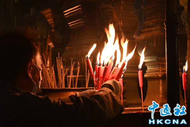 •   香港法定古跡文武廟是香港歷史最悠久的廟宇之一。農曆新年前夕,有許多來自世界各地遊客進香朝拜。位於香港上環荷李活道的文武廟估計於1847至1862年期間落成。文武廟主要為供奉文昌及武帝,列聖宮則用作供奉諸神列聖。文武廟對香港具有重要的歷史和社會意義,反映昔日香港華人的社會組織和宗教習俗。屋頂由綠瓦鋪成的文武廟,估計建於1847至1862年間,由文武廟、列聖宮和公所三幢建築組成。文武廟內還完好地保留了鑄於1847年的銅鐘,和造於1862年的官轎。古廟屋頂的花崗石柱、花崗石門框、木雕匾額和歷史悠久的壁畫,更是巧奪天工,盡顯精湛的傳統工藝和技術,活靈活現地展示中式建築的特色。善信來文武廟,有的祈求學業猛進、有的祈求事事順景。你可以準備元寶衣紙、一紮細香、三枝長壽香及香油錢,奉上香火誠心祈福。其他供品例如生菜寓意“生財”;圓形的橘子類水果則代表圓滿和順利。 (香港中通社記者洪少葵攝)香港中通社圖片