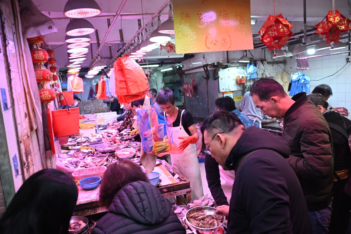 街市有各種海鮮、雞鴨魚肉、水果蔬菜、鮮花盆景林林總總,攤檔生意興隆