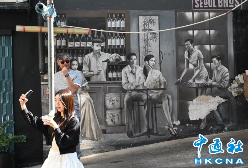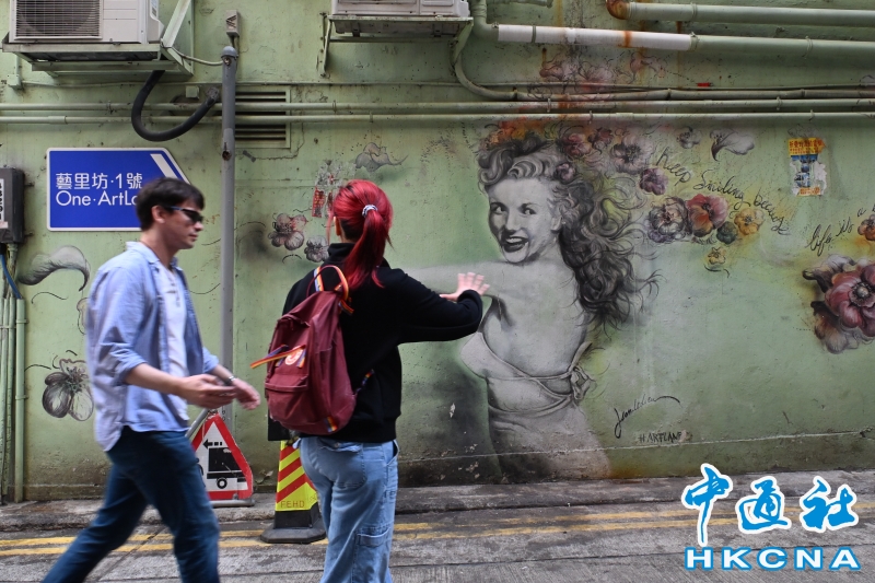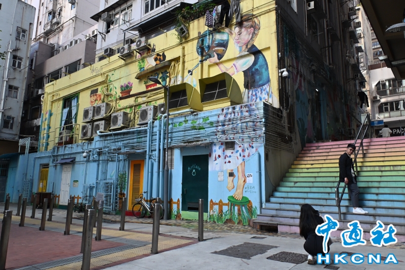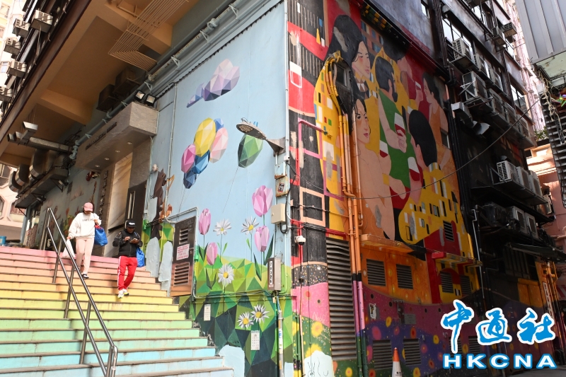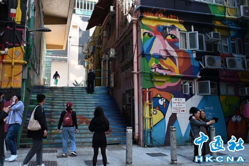新年伊始,不少遊客蒞臨香港西環的“藝里坊”一帶游覽,鮮艶的塗鴉成為訪港遊客的熱門打卡地方。位於西營盤的“藝里坊 ARTLANE”,多幅大型壁畫作品融入忠正街、奇靈里及石棧里,壁畫類型分布於牆壁、街道、樓梯和圍板,繪制了本地和國際藝術家的塗鴉壁畫作品,以紐約、倫敦、首爾等大都會的壁畫街作為靈感,將不同的藝術帶進西營盤社區。在港島中西區有著非常濃厚的中西文化交融,摩天商廈和古老民居交錯林立,在強烈對比中又能同時並存,形成別具特色的都市地方縮影。從中環金融區再往西邊行,儼如穿梭時光隧道,由非常現代化的景物進入西營盤舊社區,海味和中藥材的店舖觸目皆是,在探索生活歷史之時,原來又可遇見舊區新裝,現時成為不少遊人、文青的打卡熱點。(香港中通社記者 洪少葵攝) 香港中通社圖片