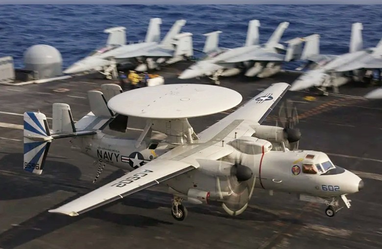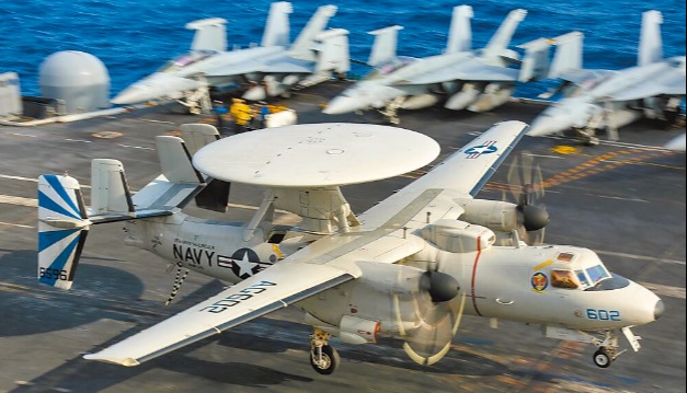 2019年2月18日,降落在林肯號航艦上的E-2D型空中預警機。美國海軍官網檔案照片