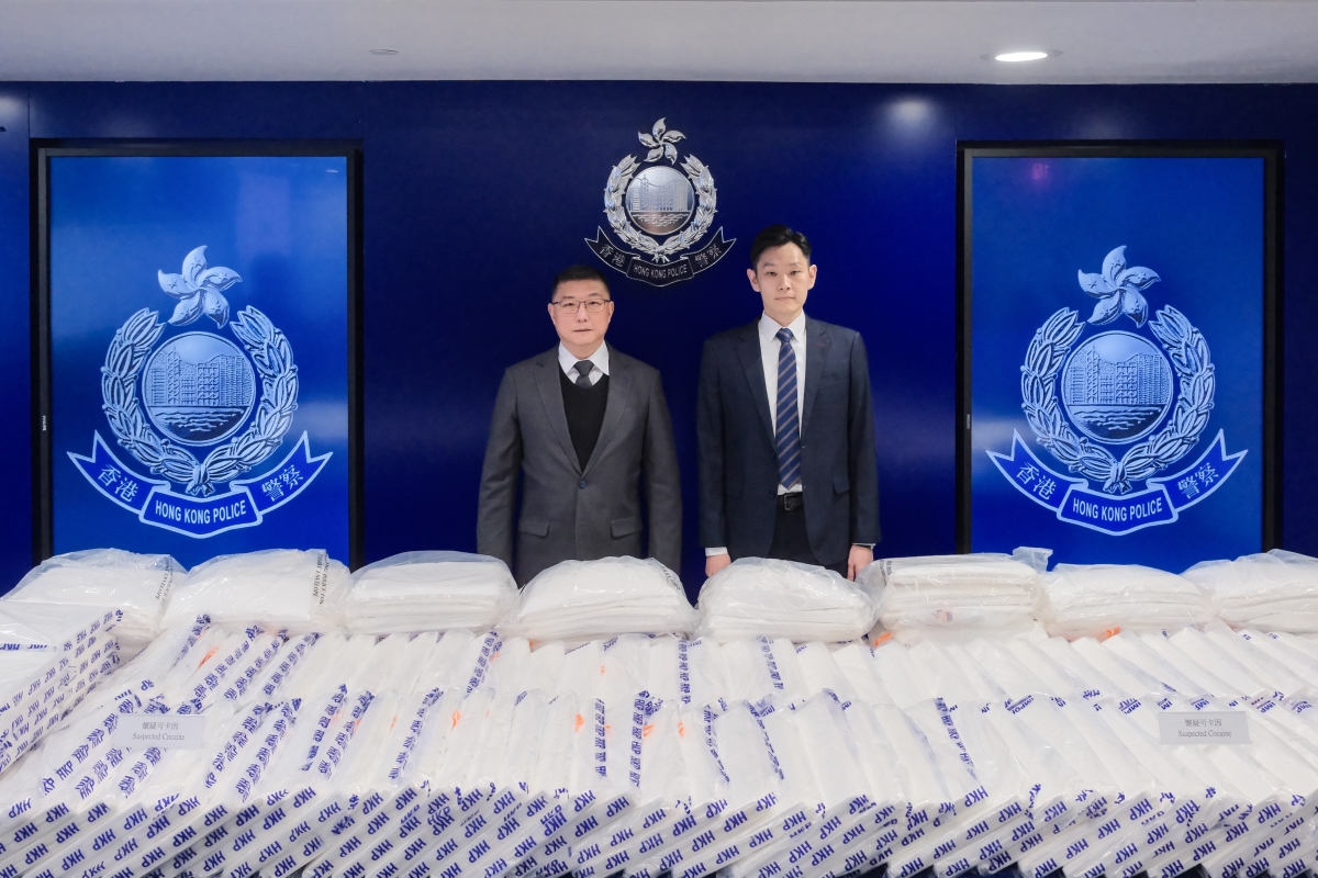 香港新聞網2月25日電(記者許其皓)2月25日,香港警方毒品調查科舉行記者會,簡介一個反毒品行動,行動中檢獲約520公斤懷疑可卡因,估計總市值超過4.3億港元。行動中有兩名分別22及23歲男子被捕,正被扣留調查,案件明日(26日)在官塘裁判法院提堂。 據了解,警方毒品調查科探員前日在將軍澳一間住宅大廈截查兩名本地男子,搜出其中一人身上藏有兩公斤懷疑可卡因,隨後在兩人住宅單位再發現多259包共重518公斤的懷疑可卡因。高級督察唐為國表示,相信這批懷疑可卡因是從南美經貨運,由水路偷運入香港,調查亦顯示販毒集團同步租用葵湧工廈一個單位,透過正當物流公司將海外運抵香港的毒品,進行拆貨工序,當中涉及1500箱急凍貨品,將收藏在內的可卡因取出,然後重新包裝,再轉送到入私人單位作毒品儲存及分銷中心。販毒集團將毒品分散放入大量貨物中,再透過不同物流公司不停轉換位置,以圖掩人耳目,增加警方的執法難度。