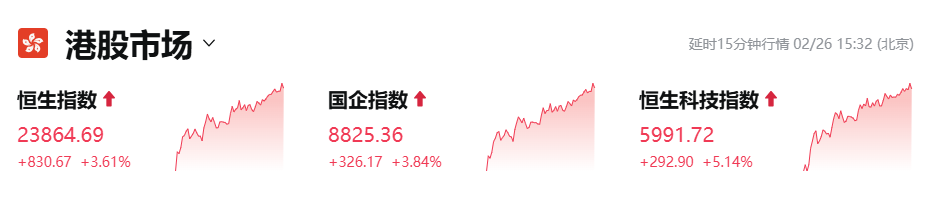 港股恒生科指飆升4% 行情還將延續嗎?香港新聞網2月26日電 港股太猛了!今天早盤起港股持續拉升,截至發稿時,恒生科技指數漲逾5%,創2021年12月以來新高。中芯國際、小鵬汽車、小米漲約6%,阿里巴巴漲逾5%。機器人概念股持續走強。港股的強勢亦帶動了A股,北證50指數漲近2.5%。摩根士丹利表示,中國股市,特別是離岸市場,正在發生結構性轉變,將帶來可持續的淨資產收益率(ROE)和估值復甦。中信證券認為,港股反轉行情料將延續。