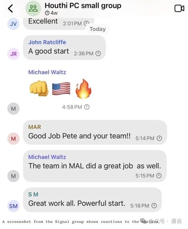 通說:群聊拉錯人洩密?美國安高層這簍子震驚了全世界這件事情,可能大多數人第一次聽的時候都不相信。美國絕密的作戰計劃,竟是通過這樣的一個方式洩漏。不僅讓全球網友大跌眼鏡,連美國總統特朗普本人也懵圈。 事情要從半個月前說起。3月11號,《大西洋》月刊總編輯傑弗里·戈德堡(Jeffrey Goldberg)聲稱自己突然被一個ID和美國國家安全顧問沃爾茲同名的人拉進了一個名叫“胡塞武裝小群”的群組裡。群組成員十分嚇人,包括美國副總統萬斯、美國國防部長赫格塞斯、美國國務卿魯比奧、中情局長拉特克利夫等。這個美國總統特朗普的國家安全團隊在群裡熱火朝天地聊起了襲擊也門胡塞武裝的作戰計劃。