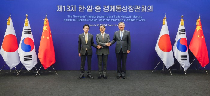 時隔5年半,中日韓重啟經貿部長會議香港新聞網3月31日電 時隔5年半,中日韓重啟經貿部長會議。據新華社報道,3月30日,第13次中日韓經貿部長會議在韓國首爾舉行。中國商務部部長王文濤與韓國產業通商資源部長官安德根、日本經濟產業大臣武藤容治共同主持會議。會議圍繞落實第九次中日韓領導人會議經貿領域重要共識,就加強貿易投資合作、區域及多邊合作等深入交換意見,達成廣泛共識。