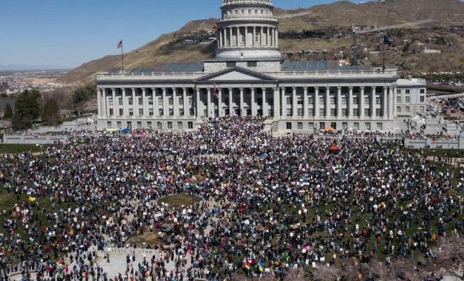 圖為美國鹽湖城爆發的抗議活動。社交媒體視頻截圖 活動組織者說,當天在首都華盛頓和全美50個州共舉行了約1300場遊行示威活動,有上百個社會團體參與,抗議地點涵蓋紐約、芝加哥、波士頓、西雅圖、洛杉磯等。 主辦方之一“前進”組織發表聲明說,特朗普政府削減勞工權利、破壞醫保體系以及導致全民生活成本持續上漲的舉措,是激發民眾抗議的主要原因。 特朗普2日在白宮簽署兩項關於所謂“對等關稅”的行政令,宣布美國對貿易夥伴設立10%的“最低基準關稅”,並對某些貿易夥伴徵收更高關稅。白宮發布的文件顯示,針對所有貿易夥伴加徵的10%關稅將於5日生效。這被美媒形容為“史上最激進”的關稅政策。 這一政策隨即引發美國和全球股市震蕩。美股三大股指均出現超5%的跌幅,歐洲三大股指全線下跌。 外媒稱,在美國5日的抗議活動開始之前,身處歐洲的一些美國人也舉行反特朗普示威,他們在柏林、法蘭克福、巴黎和倫敦街頭聚集,聲明反對特朗普徹底改變美國國內外政策。 特朗普5日在社交平台承認關稅政策引發全球震蕩,但他敦促美國人民“保持耐心”。他表示:“過去我們一直是愚蠢的冤大頭,但現在不是了。我們正以前所未有的方式振興就業和商業。”(完) 【編輯:馬華】