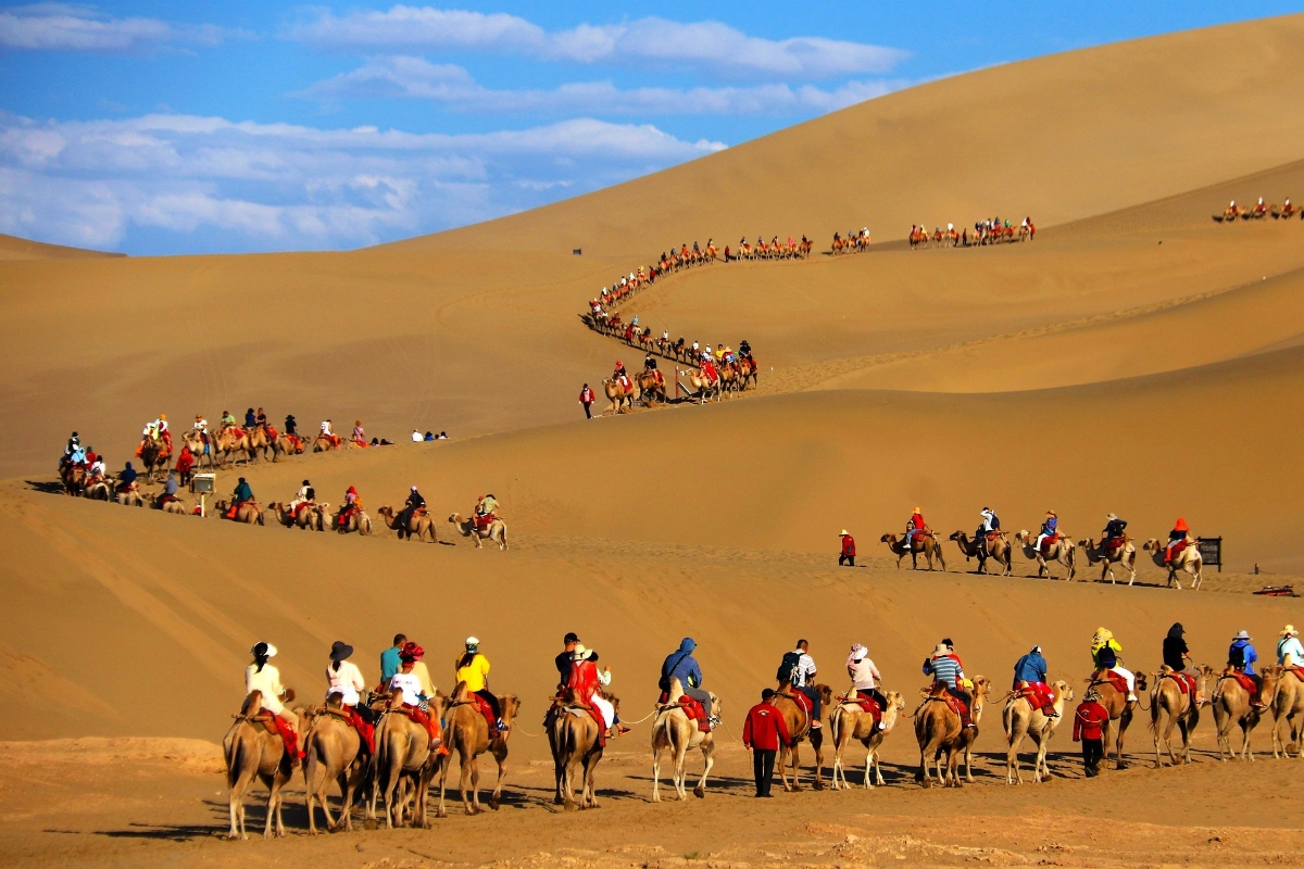 資料圖為敦煌鳴沙山內,遊客騎駱駝感受大漠。 香港中通社圖片 據央視新聞報道,數據顯示,截至目前,今年“五一”入境游訂單量同比去年增長173%。上海、北京、廣州、深圳、成都等地成為“五一”入境游熱門旅遊目的地。 目前,中國18個鐵路局集團公司已共計安排75條旅遊列車運營線,基本通達全國大部分旅遊景區城市。(完) 【編輯:彭玉婷】