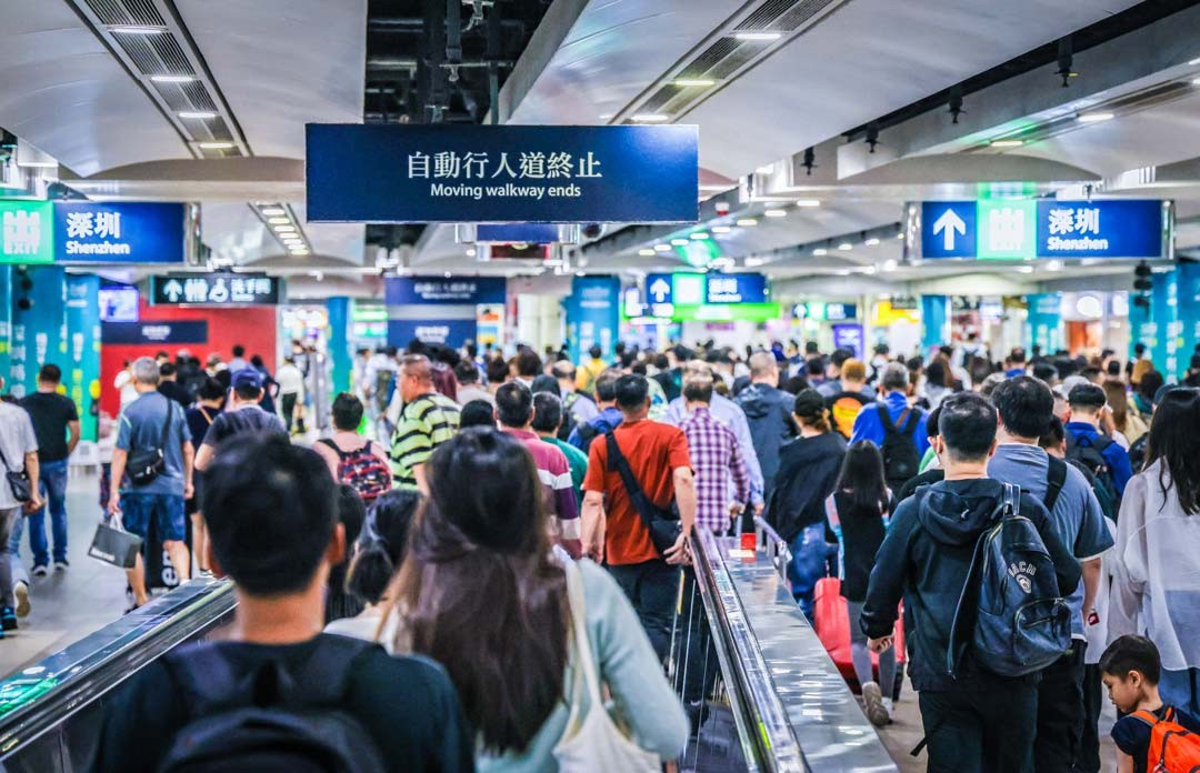 4月18日是香港復活節小長假首日,前往內地的各個口岸“逼爆”,香港入境處表示,18日截至早上10時,各口岸共有24.1萬港人離境,其中以羅湖口岸及落馬洲支線/福田口岸佔最多,分別有4.7萬及4.6萬人;其次為西九龍高鐵站,再則是機場,可見北上仍是大多數港人的出遊選擇。在港鐵上水站,前往羅湖和落馬洲的列車趟趟都擠滿了人,即便港鐵加密班次,仍難以“消化”站台上的乘客,拉著行李箱的乘客需要等兩三趟才能擠上車。深圳灣大橋亦出現車龍,有網民在社交平台呼籲,大橋大塞車,去深圳灣千萬別坐的士,“沒得投降落車”。圖為羅湖口岸。(香港中通社記者 曹文毓攝)