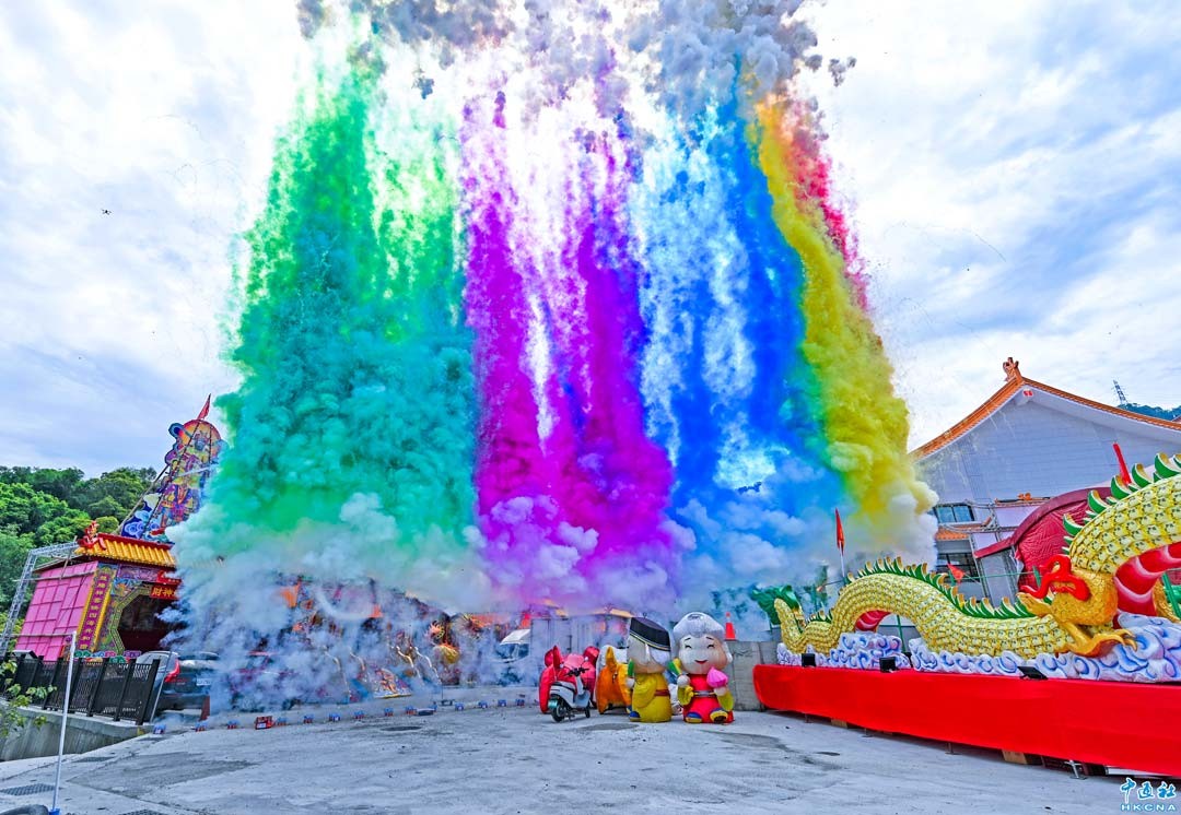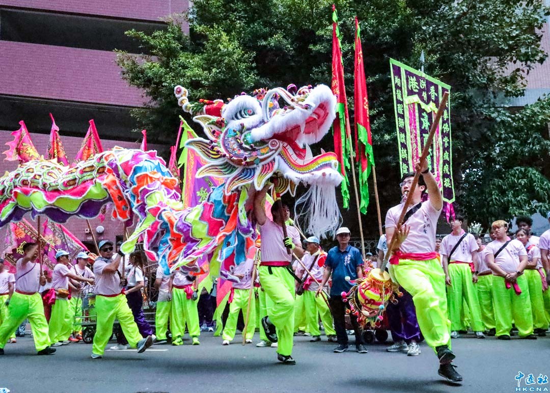 4月20日,香港元朗區鑼鼓喧天,龍獅起舞。超過60年歷史的元朗十八鄉天后寶誕會景巡遊熱鬧舉行。37隊來自各鄉村的花炮隊及表演隊伍,浩浩蕩蕩。當中包括舞龍、舞獅、舞麒麟及英歌舞等表演,以及展示別具特色的花炮, 天后誕是香港元朗的一項傳統慶祝活動,每年農曆三月廿三日舉行,自1963年以來成為重要節慶。此活動是香港規模最大的天后誕慶典之一,亦在2021年被列入國家級非物質文化遺產代表性項目。(香港中通社記者 洪少葵攝)