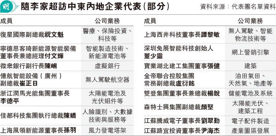 李家超訪中東內企隨行名單曝光 香港成就中外“超級紐帶”再進一步香港新聞網5月12日電(編輯 王少喆)香港特首李家超11日率領商界抵達中東國家卡塔爾首都多哈,開展其三年內第二次中東訪問。此次李家超首度帶領內地企業出訪,有24名內企代表隨團,大部分為創科或新能源企業。李家超稱,旨在協助企業“走出去”,並期望內企和香港企業優勢互補,發揮協同效應,提供全方位供應鏈服務。 另一方面,隨著北都區開發加快、內企大量來港上市,香港與中國內地的經濟“共振”不斷加強。外界分析,在關稅戰帶來的“新秩序新機遇”面前,發揮香港在國家對外交往中的獨特作用,成為中國與世界的“超級紐帶”,或將成為香港應對世界格局變化的“最大底牌”。 “關稅戰帶來新秩序新機遇” 訪問團成員共有24間內地企業代表(見表),大部分屬創科或新能源企業,如研發無人機的億航智能設備(廣州)副總裁崔正日、虛擬銀行微眾銀行副行長陳峭、人工智能企業佳都科技集團執行總裁陳嬌、從事油氣田和天然氣業務的金帝聯合控股集團常務副總裁盧衍銘等。其他內企代表包括復星醫藥母公司復星國際副總裁祝文魁、建築公司寶業湖北建工集團董事張健等。 大部分隨團內企尚未在香港上市,僅復星國際及寶業湖北建工集團的母公司寶業集團已在港上市。李家超昨抵埗後與多名內企代表交流,他在社交媒體稱與內企共同出訪,旨在發揮香港“內聯外通”優勢,幫助它們“走出去”。 李家超當日到訪當地主權財富基金卡塔爾投資局,探討雙方在金融和經濟的合作機遇,其後出席渣打卡塔爾分行舉辦的市場簡介會暨午餐會。他在會上分享香港獨特優勢,強調本港面對關稅戰仍繼續保持“自由港”地位、實施“零關稅”。他指關稅戰帶來新秩序、新機遇,本港與內地工商界合作,能提供全面供應鏈管理系統,將惠及全球,他鼓勵卡塔爾企業利用本港資本市場、專業金融服務,以及與內地互聯互通的優勢,籌集國際資金。