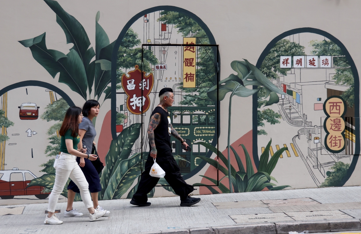 途人經過藝術壁畫。