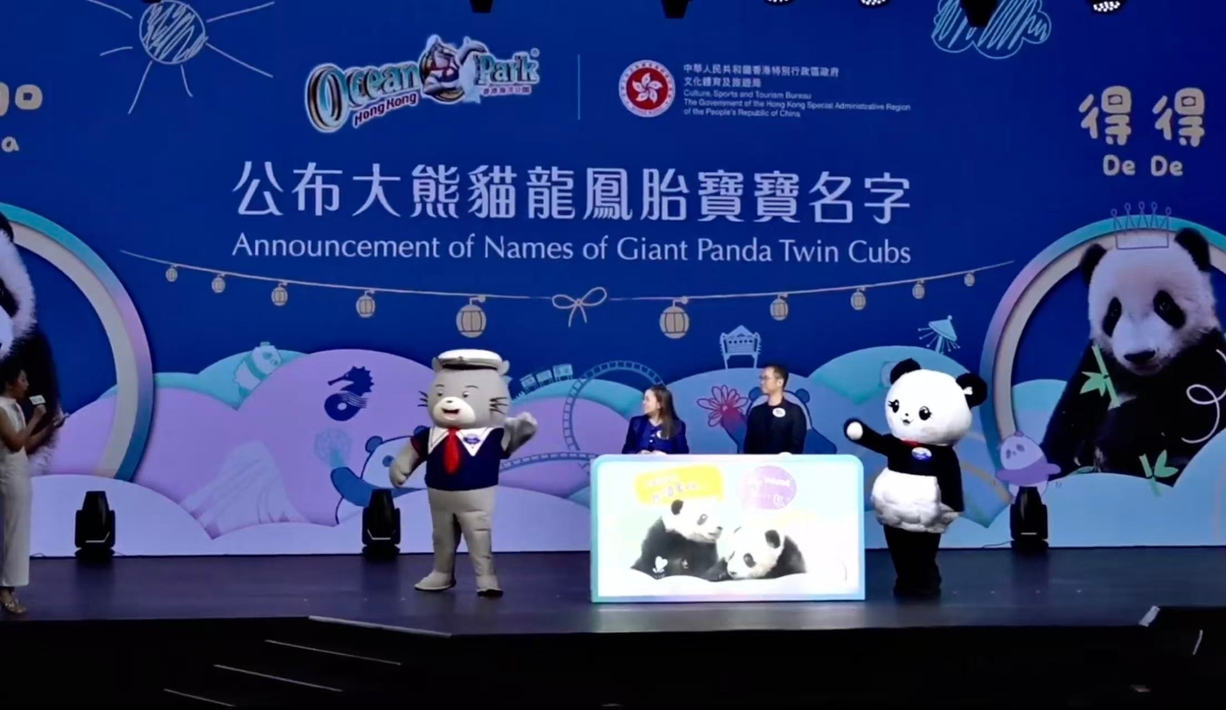 “加加”意爲加油打氣,亦有“家庭”的“家”同音。“得得”寓意香港事事都得。 兩隻大熊貓寶寶於2024年8月15日出生,是中央政府於2007年贈送予香港的大熊貓“盈盈”和“樂樂”誔下的一對龍鳳胎,也是首對於香港出生的大熊貓。 (完) 【編輯:陳卓儀】