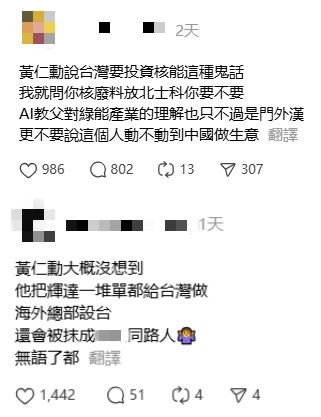 資料圖為黃仁勳。香港中通社圖片 5月21日,黃仁勳公開表示,AI產業未來最大挑戰是“能源問題”,台當局應該支持多元能源,包含風力、太陽能與核能,並強調台灣絕對應該投資核能,“能源不該被污名化”。 黃仁勳此番表態連日來不斷發酵,成為許多人討論的焦點話題。 事件時機頗為耐人尋味。5月18日,台灣正式進入“非核家園”,次日(19日),黃仁勳宣布英偉達海外總部落腳台北。“零核”首周,停電幾乎變成“全台接力賽”,火力發電超過九成、空氣質量變差的消息頻傳,台灣社會“重啟核能”的聲音不絕於耳。而無論是“在野黨”,還是媒體專家,建議台當局“重啟核能”的其中一個很重要的原因,就是質疑台灣是否能為英偉達穩定供電。 但令人疑惑的是,黃仁勳21日公開喊話台當局應投資核能,第一時間并未激起水花;真正發酵起來成為台灣社會討論焦點的時間,是在這兩天。 有台媒猜測,這或許和特朗普簽署最新行政命令“鬆綁核電”有關。當地時間23日,美國總統特朗普簽署了四項與核能相關的行政命令,有分析稱特朗普欲推動“核能復興”。 有分析指出,黃仁勳向來被民進黨視為“台灣之光”,他這番“台灣需要核電”的強力發言,似乎讓賴當局不知所措,第一時間未予以正式回應,各大綠媒第一時間也是靜悄悄,沒有報道黃仁勳這番言論。 但當話題發酵後,青鳥(民進黨的年輕支持者)“飛了出來”,大批網軍“毅然出征”。 有青鳥表示,“呵呵,黃仁勳什麼咖?沒選高雄設總部,現在又在吹核電,更不用說前陣子還去中國(大陸),立場很明顯了啦!”“他也很好笑,明明知道台灣缺電,還要來台灣設廠?”“核廢料放你房間嗎?”“AI教父對綠能產業的理解也不過是門外漢。”甚至還有青鳥稱黃仁勳是“大陸同路人”,離譜言論令不少台灣網友感到無奈。