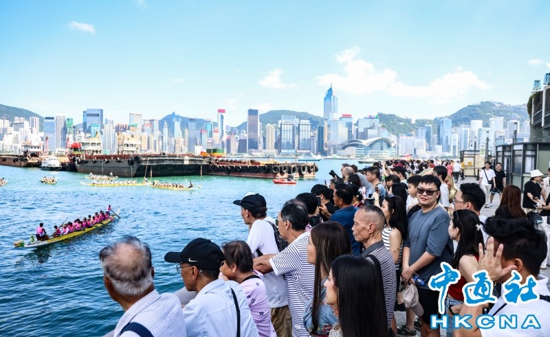 香港中通社圖片(香港中通社記者 曹文毓攝) 今年賽事規模空前,共吸引超過190支隊伍;涵蓋內地、香港、澳門、台灣、日本、泰國、馬來西亞、菲律賓、阿聯酋及加拿大等;更有首次參賽的埃及和卡塔爾隊,彰顯賽事國際影響力與吸引力。 當日賽事主要為晉級決賽的資格爭奪戰,儘管天氣酷熱,香港天文台更錄今年以來最高氣溫33.6度。但各隊選手們仍在500米的維港賽道上奮力劃槳,百舸爭流。決賽將於8日上午8時鳴鑼,屆時各個項目的冠軍將揭曉。 香港國際龍舟邀請賽可追溯至1976年,當時除了9支香港漁民龍舟隊外,日本長崎的漁民隊亦有來港參加。兩年後的國際龍舟邀請賽才開始有美國、巴布亞新幾內亞、 新加坡等國際隊伍參與。1985年後更加入女子錦標賽等多個項目。