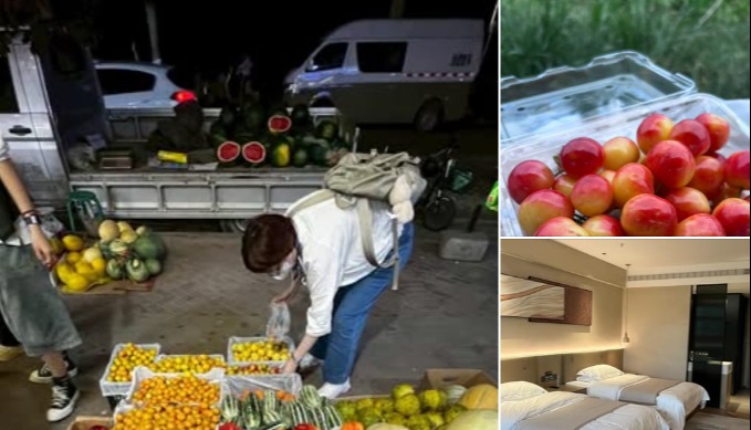 晚上9時許,“館長”一行人在餐廳用餐。吃飯期間,不少大陸民眾自發點外賣“投喂”,還有一位大陸自媒體博主現身,幽默送出“大陸美食三件套”:泡面、榨菜、茶葉蛋。隨後,另一位台灣網紅“歷史哥”與“館長”進行視頻通話,“館長”有感而發,“民進黨都在亂講”。