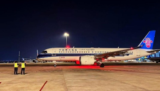 資料圖為一架南航C919國產大飛機在廣州白雲國際機場起飛。圖片來源:新華社 當日10時28分,一架搭載著154名旅客的C919飛機穩穩落地鄭州新鄭國際機場,順利完成C919的鄭州首航,這標誌著鄭州新鄭國際機場成為國產大飛機的又一通航機場,正式開啟C919廣州至鄭州航線的常態化商業運營。 按照計劃,該航班今起開始常態化執飛廣州-鄭州航線,每天一班往返。 據了解,隨著此次鄭州加入C919航線網路,目前C919的服務範圍已覆蓋中國大陸超16個城市,執飛20餘條商業航線。C919通航城市包括上海、成都、北京、西安、廣州、太原、武漢、重慶、杭州、海口、三亞、長沙、溫州、瀋陽、深圳、廈門等。 截至2025年5月28日,中國三大航空公司——國航、東航、南航共18架C919飛機投入商業運營,執飛20餘條商業航線,安全飛行超3.6萬小時,累計運輸旅客超過205萬人次。(完) 【編輯:石歡歡】