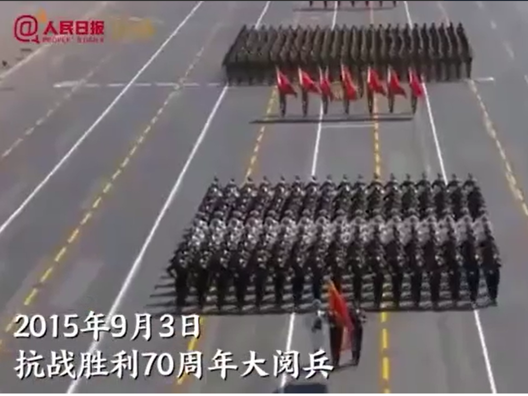 2015年抗戰勝利70周年閱兵禮現場截圖。(圖源:人民日報)