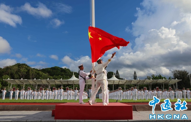 7月1日,解放軍駐港部隊舉行“七一”升國旗儀式,慶祝香港回歸祖國28周年。香港中通社圖片