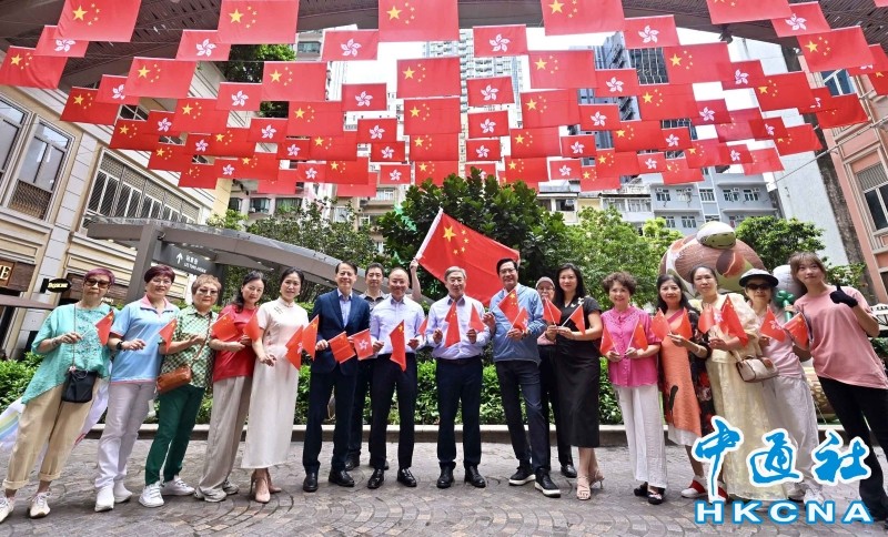 (多圖)香港慶祝回歸祖國28周年 街頭彩旗飛揚分享到: