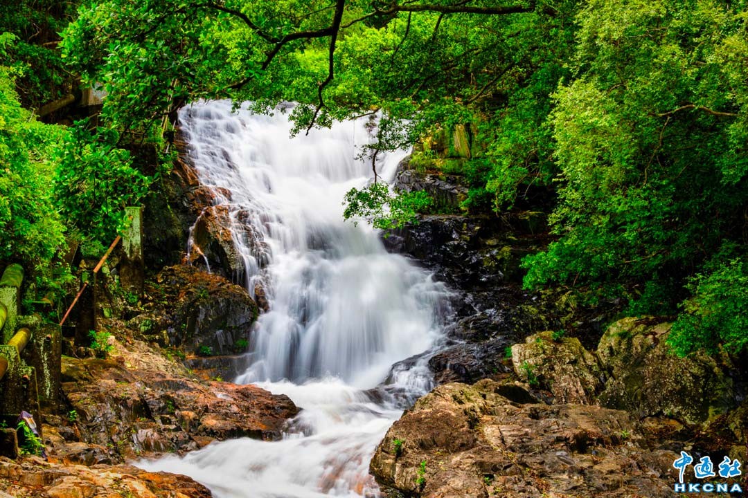 近日,受到連日暴雨影嚮,香港黃竹坑山澗出現小瀑布,景色宜人。(蔡志東 攝)