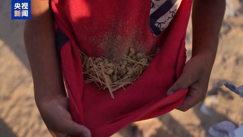 加沙難民展示他搶到的空投物資。央視新聞圖 還有流離失所者呼籲盡快開放口岸,讓聯合國以及其他國際援助物資進入加沙地帶,這樣才是安全且有保障的方式。(完) 【編輯:豐悅】