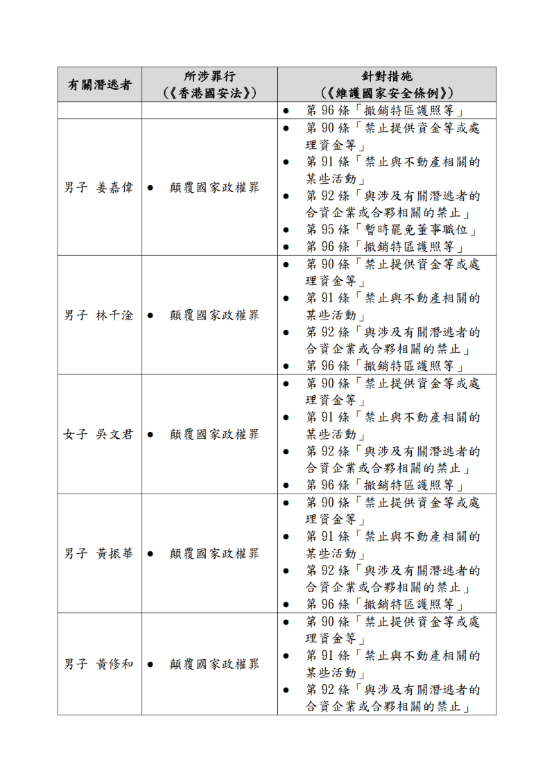 香港特區政府指明涉國安犯罪潛逃者及對其施行措施分享到:
