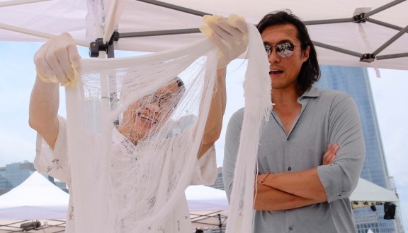以“獅子山”畫作鼓勵災民 林天行個展“夜·香港”開幕