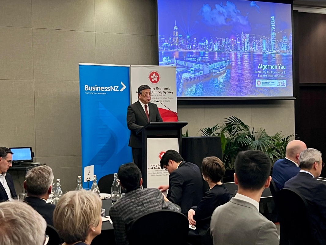圖示丘應樺在香港駐悉尼經濟貿易辦事處與BusinessNZ在威靈頓合辦的商務晚宴上致辭(圖源:政府新聞處) 據政府公佈,丘應樺到訪威靈頓,與新西蘭農業、林業、貿易及投資部長兼外交部副部長Todd McClay會面,介紹香港的最新經濟發展及促進貿易和投資的措施,包括調低烈酒稅,並就加強雙邊關係以達致互利共贏交換意見。 丘應樺指出,香港已準備好加入作為全球最大自由貿易協定的《區域全面經濟伙伴關係協定》(RCEP)。RCEP的15個成員經濟體(包括新西蘭)均為香港主要貿易夥伴,合共佔香港貿易總額七成。他呼籲新西蘭支持香港盡早加入RCEP,並指香港銳意透過加入RCEP,為區域經濟發展和融合作出重要貢獻。 丘應樺亦與新西蘭貿易發展局主席及新西蘭招商引資處董事局成員Charles Finny會面,加深了解當地產業的最新發展,並就探討合作機會交換意見。丘應樺亦分享香港的獨特優勢和優越的營商環境,為新西蘭企業和投資者帶來龐大商機。(完) 【編輯:淩玉輝】