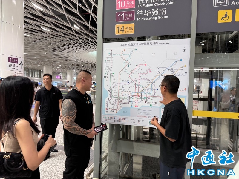 8月16日,台灣網紅“館長”深圳行第四日,參觀崗廈北地鐵站“深圳之眼”。 香港中通社圖片 到深圳崗廈地鐵站參觀“深圳之眼”,陳之漢看到現代化又極具美感的建築,特地向自己直播中的粉絲說,大陸的基礎建設不止強,而且美,“搞成一個藝術品”。 陳之漢又坐上直升飛機,從空中鳥瞰整個深圳。接受香港中通社記者採訪時,他對深圳的發展感歎“太厲害了”、“很佩服”,並表示台灣的官員應該多到大陸交流、學習,希望未來台灣可以和大陸“一樣強”。