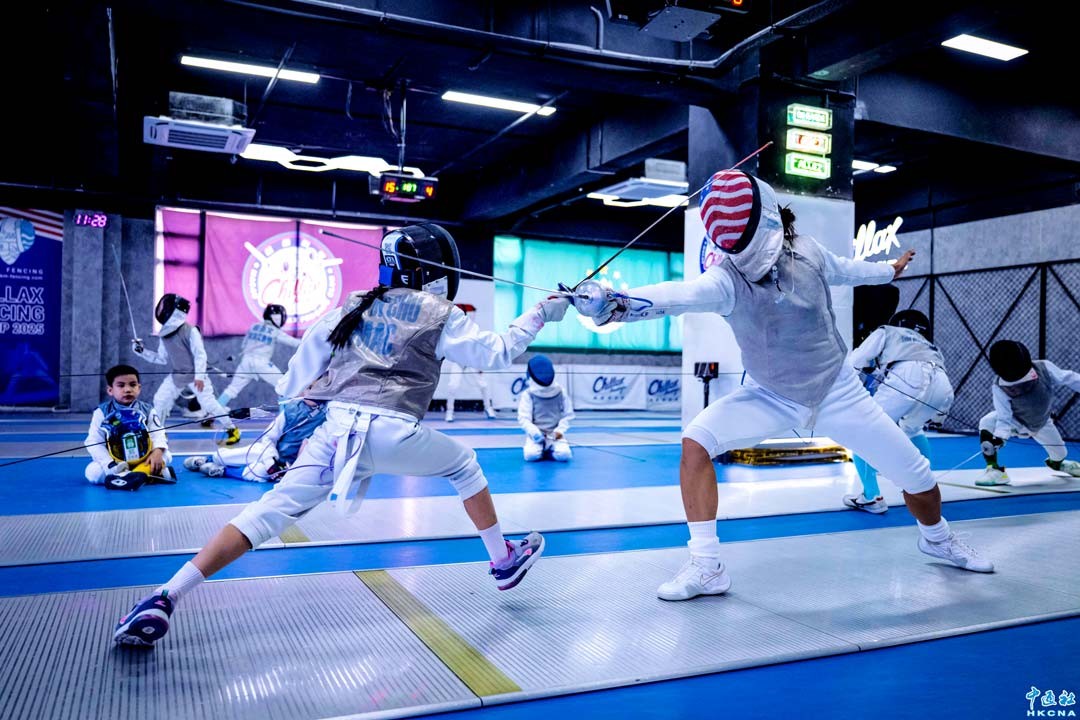 8月12日,LEE KIEFER(右)在交流營與小學員對打。當日,由澳門超酷劍擊體育會及美國KM Fencing主辦的奧運冠軍交流營在澳門超酷劍擊體育會會址舉行。交流營邀請兩屆奧運冠軍兼連續4年女子花劍“世一”的LEE KIEFER,以及世錦賽男子花劍冠軍、里約奧運銅牌得主Gerek Meinhardt到澳門參與交流。活動12日起一連三天舉行,吸引不同地區的青少年劍手參與,兩名世界劍擊頂尖選手更親自指導,期望能將劍擊相關知識及技巧傳授予小學員,也讓他們更熱愛劍擊運動。 香港中通社圖片