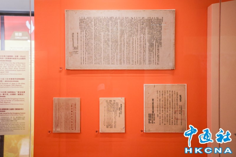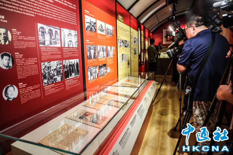 為紀念中國人民抗日戰爭暨世界反法西斯戰爭勝利八十周年,香港抗戰及海防博物館與廣東革命歷史博物館合作,推出“風雨同舟 共建和平一一粵港人民抗戰勝利八十周年展”。展覽由8月29日起至明年7月8日舉行。展覽聚焦面對外敵入侵時,粵港兩地人民在中國共產黨的領導下,血脈相連、團結一心、共同抗敵的歷史。展覽展出約40件/ 套抗戰文物,以及約一百五十幀歷史照片,包括東江縱隊成員曾使用的物品、抗戰先烈及記錄廣州和香港淪陷期間的照片等。(香港中通社記者 曹文毓攝) 香港中通社圖片