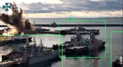 8月28日,香港跨部門反恐專責組在啟德郵輪碼頭進行代號“勇光”的跨部門反恐演習。圖為演習模擬一名極端份子嘗試縱火,船頭位置突然冒出火光及濃煙。消防處滅火輪利用遙控水炮控制火勢。(香港中通社記者 謝光磊 攝) 香港中通社圖片