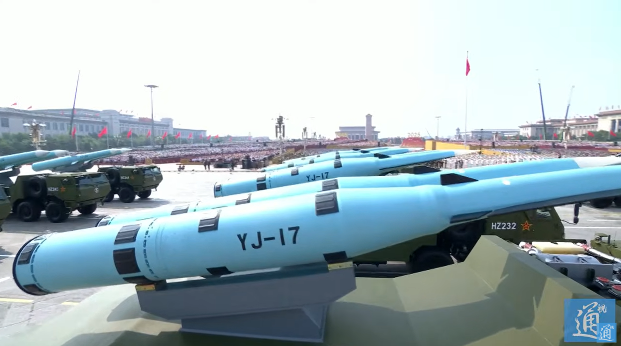 HQ-22A地导武器系统也是本次阅兵中首次展示的一型新型防空导弹武器系统。(香港中通社記者 陳卓儀攝) 核導彈第二方隊接受檢閱。(視頻來源:香港中通社) 【北京時間10:10】 艦載防空武器方隊接受檢閱。4型受閱裝備構成遠近銜接、立體對空防禦體系。