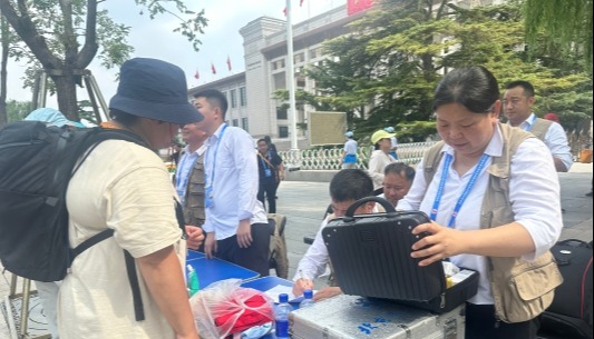 (九三閱兵)中通社記者直擊閱兵現場的五個細節香港中通社北京9月3日電(香港中通社記者 陳卓儀)9月3日,紀念中國人民抗日戰爭暨世界反法西斯戰爭勝利80周年大會在北京天安門廣場隆重舉行。中共中央總書記、國家主席、中央軍委主席習近平發表重要講話并檢閱部隊。香港中通社記者在大會現場觀察到,這一次紀念活動既有國際關注的元首同框焦點、也有不少武器新亮點,更有高燃瞬間和感動細節。 中俄朝元首“世紀同框” 這是繼2015年之後,中國再次在天安門廣場舉行抗戰主題的紀念大會。62位外國領導人及有關國家高級別代表、國際組織負責人、前政要等應邀出席大會。其中,俄羅斯總統普京,朝鮮勞動黨總書記、國務委員長金正恩此次來北京,行程備受關注。 上午約8時30分,中俄朝元首在紀念抗戰勝利80周年的活動同框,一同登上天安門城樓,畫面格外受關注,被視為“世紀同框”。觀禮區設置的直播大屏幕上,當三位領導人同框時,現場許多觀眾都感興趣地舉起手機拍攝。當天上午的活動,電視轉播多次切換到三位元首頻頻互動畫面,也成為了長安街上新型裝備之外,全球關注的細節。 重要講話掌聲持續 當天上午,在56門禮炮的80響鳴放中,紀念大會拉開序幕,國旗護衛隊官兵護衛著五星紅旗排列成“80”的字樣,現場氣氛肅穆。隨後,中國人民解放軍聯合軍樂團奏響《義勇軍進行曲》,全場齊唱中華人民共和國國歌。