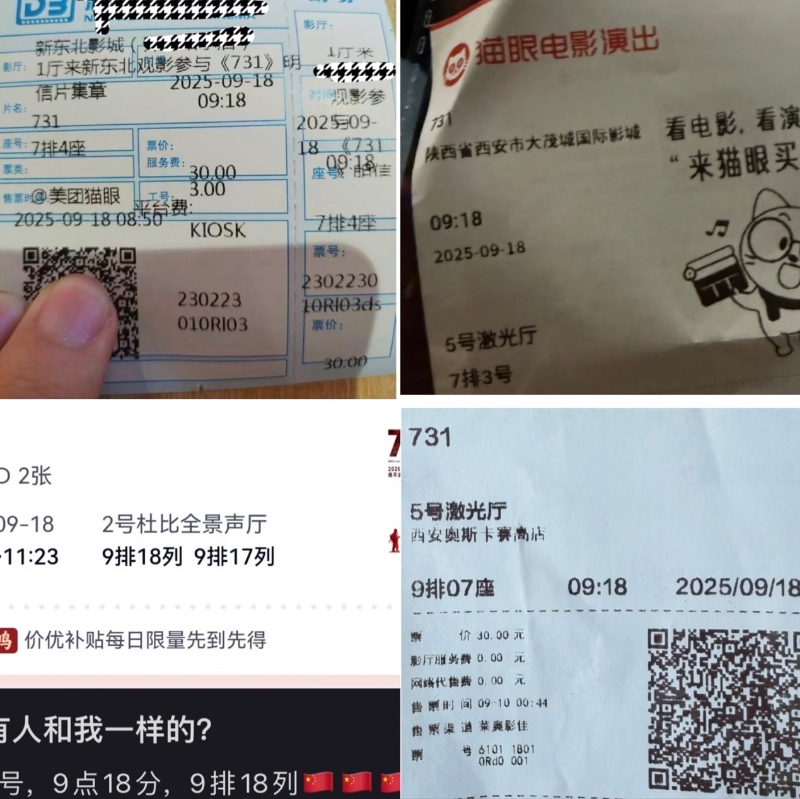 城市票房分布(據燈塔數據) 國內多地影院在排片上也有意增加了“儀式感”,許多影院將當日的首場放映時間定在了上午9點18分,并注有“警鐘長鳴”的標識,不少觀眾衝著這個點買票曬出票根,甚至有人專門把座位選在了9排18號。
