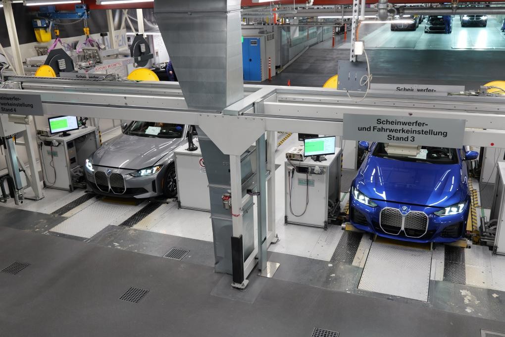 這是2月27日在德國慕尼黑拍攝的寶馬集團工廠內的流水線。新華社圖片